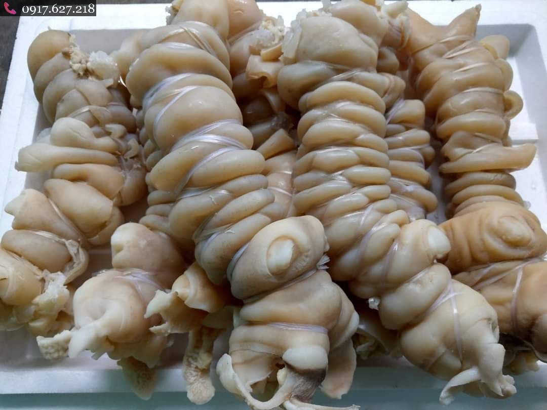 • Hàng đã luộc chín, cuộn sẵn, bên trong còn gân y dai giòn.